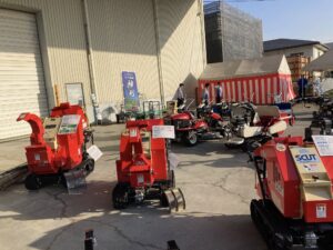 樹木粉砕機KDC-1303B、KDC-803B、HNK-600-1展示、実演予定です。